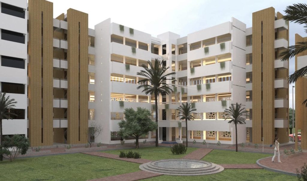 With exceptional efforts and direct supervision from Dr. Naeem Al-Aboudi, Minister of Higher Education and Scientific Research, and the University President, Professor Kazem Al-Jubouri, the Projects and Construction Department obtained the necessary approvals to establish the College of Engineering project on an area of 8550 m2. The project consists of a building with six floors, electric elevators, multi-purpose classrooms of different dimensions, administrative rooms, health complexes, and modern VRF air conditioning systems.