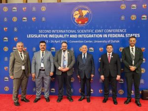 A group of professors from the College of Law at the University of Al-Qadisiyah participated in the activities of the Second Joint International Scientific Conference for the Colleges of Law at the Universities of Duhok, Sulaymaniyah, and Salahaddin, held in the city of Duhok under the title “Legislative inequality and Integration in Federal States.”