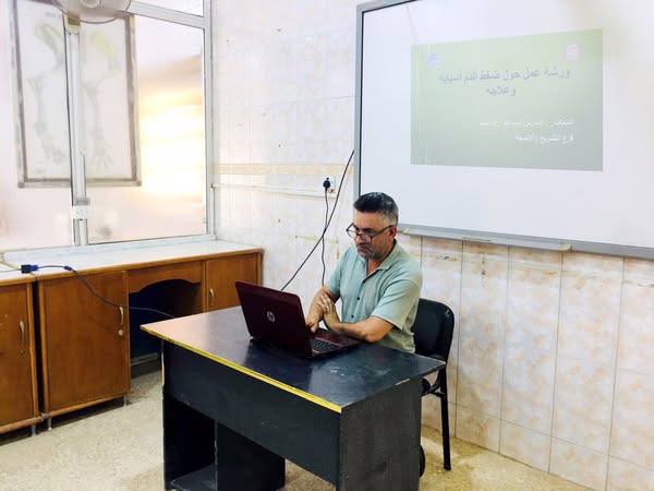 The College of Veterinary Medicine at Al-Qadisiyah University held a workshop on blood pressure, its causes, and treatment. Assistant Professor Raed Kaht presented the workshop.