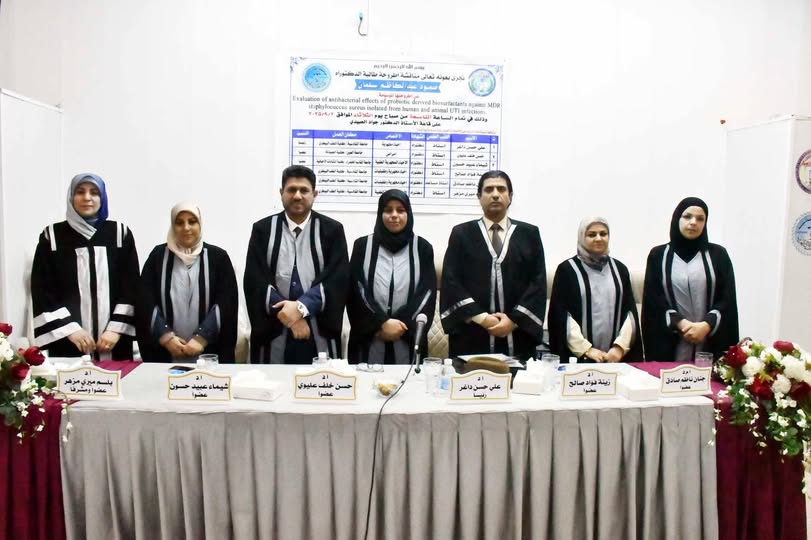 A doctoral thesis was discussed at the College of Veterinary Medicine at Al-Qadisiyah University. The thesis was presented by researcher Samoud Abdul-Kazem Salman, under the supervision of Professor Dr. Balsam Miri Mazhar.
