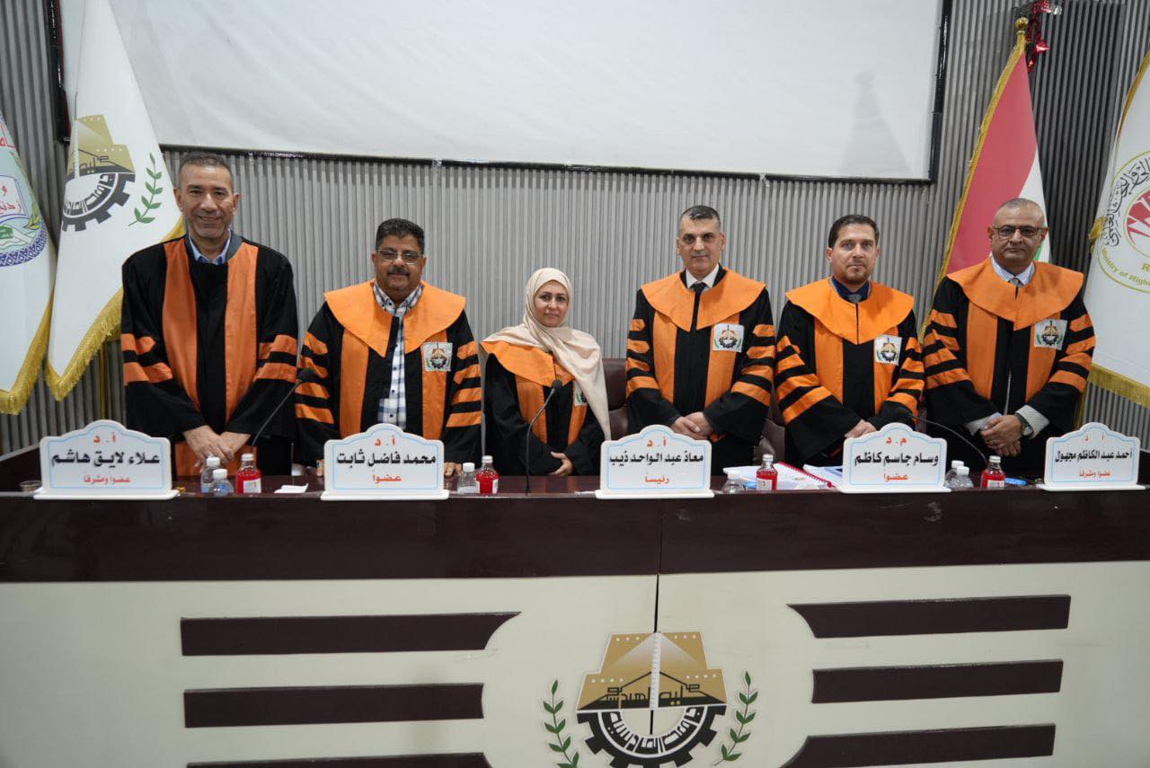 The Department of Mechanical Engineering at the College of Engineering at Al-Qadisiyah University discussed a master’s thesis by researcher Mai Abdul Khaliq Abdul Aoun Al-Kanani, under the supervision of Prof. Dr. Alaa Laiq Hashim and Prof. Dr. Ahmed Kazem Majhool.