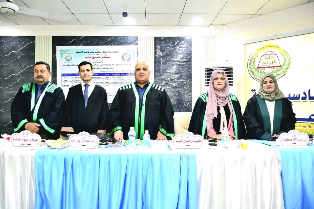 A master’s thesis was discussed at the College of Agriculture at Al-Qadisiyah University, The thesis was presented by researcher Muntadhar Hussein Khalaf and supervised by Professor Dr. Hayawi Waheed Attia Al-Jawdhari.