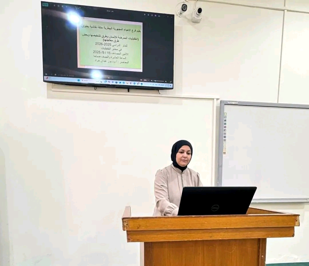 The College of Veterinary Medicine at Al-Qadisiyah University holds a seminar on parasites that are pathogenic to humans, their diagnosis methods, and some treatment methods.