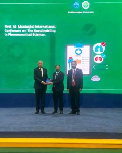 A group of professors from the College of Pharmacy at Al-Qadisiyah University participated in the activities of the First International Conference on Sustainability in Pharmaceutical Sciences, held at Al-Mustaqbal University. The professors included the Dean of the College, Assistant Professor Dr. Asaad Hassan Al-Zaidi, Assistant Professor Dr. Hussam Hamza Sahib, Assis. Lec. Ali Lilon, and Assis. Lec. Alaa Majid.