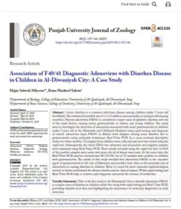 Assistant Professor Dr. Rana Mishal Salem, a lecturer at the College of Dentistry at Al-Qadisiyah University, contributed to the publication of a joint scientific paper in the Punjab University Journal of Zoology, which is indexed in Scopus. The paper is titled “Association of Diagnostic Adenovirus F40/4 with Diarrhea in Children in Diwaniyah City: A Case Study.”