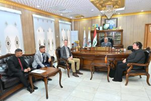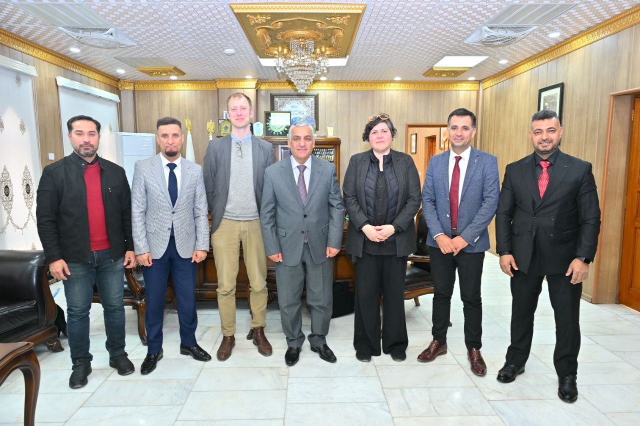 Professor Dr. Rahi Kalaf Mahdi Al-Yassiri, President of Al-Qadisiyah University, received a team from the Cuneiform Text Digitization Initiative at his office to discuss prospects for scientific and research cooperation. The meeting was also attended by Professor Dr. Rajwan Faisal Al-Mayali, Dean of the College of Archaeology, and Professor Dr. Jaafar Al-Jawdhari.