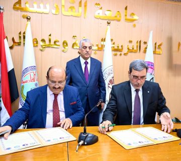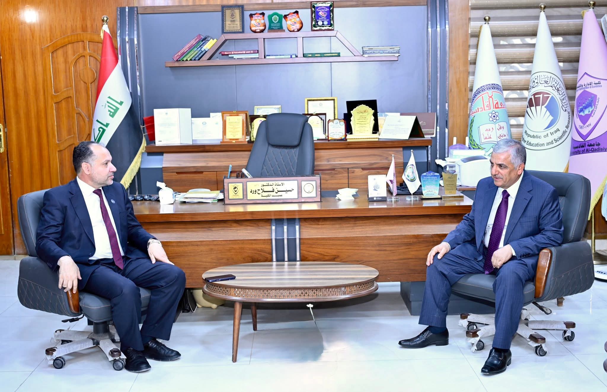 The meeting focused on joint activities between the two universities, following an invitation from the College of Administration and Economics at Al-Qadisiyah University to the President of Al-Furat Al-Awsat Technical University to participate in a joint specialized scientific symposium on “The Strait of Hormuz: Between War and Diplomacy.”